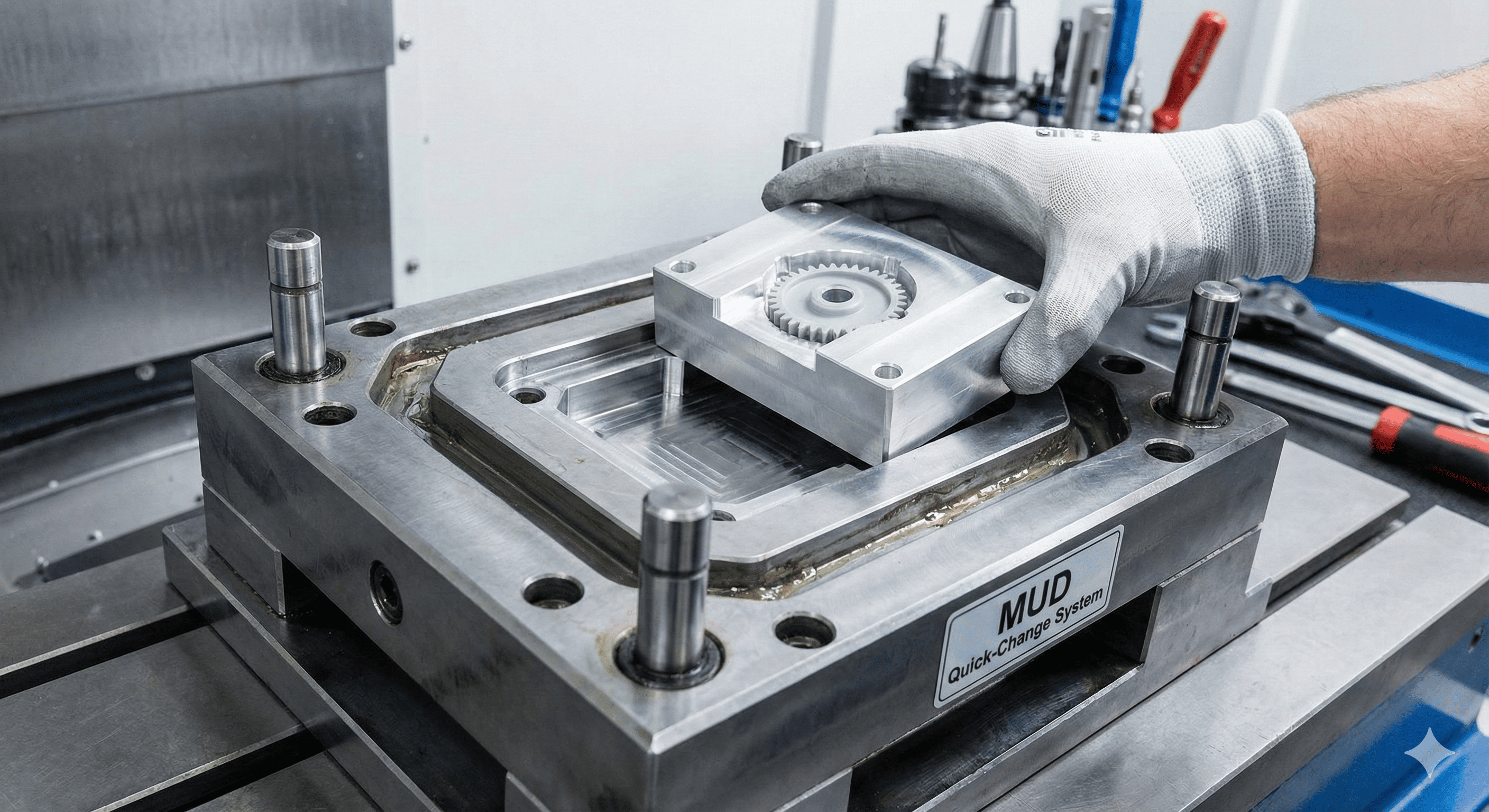 Ciężkie podnoszenie odbywa się podczas Projekt formy . W przypadku produkcji wielkoseryjnej martwisz się każdą mikrosekundą czasu cyklu, dlatego budujesz złożone „płaszcze wodne” do chłodzenia. W przypadku formowania o małej objętości upraszczamy. Używamy Matryca jednostki głównej (MUD) podstawy — standardowe ramki, w których znajdują się niestandardowe wstawki. Oznacza to, że musimy wyciąć jedynie „wnękę” (kształt części), a nie cały, masywny blok metalu.