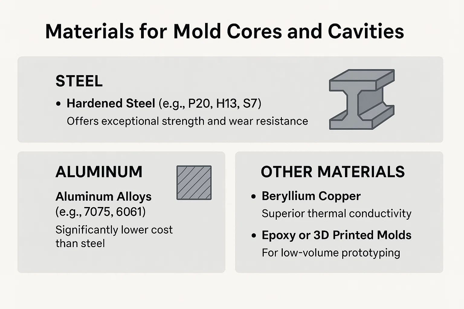 Stal jest najczęstszym i preferowanym materiałem do form wtrysku, szczególnie w przypadku biegów produkcyjnych o dużej objętości.