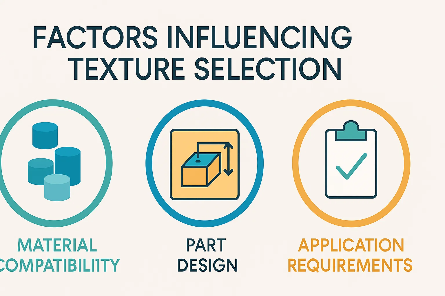 Wybór właściwej tekstury formy dla części jest krytyczną decyzją, która równoważy estetykę, funkcjonalność i ograniczenia produkcyjne. Proces selekcji rzadko jest podejściem do jednego rozmiaru i zależy w dużej mierze od trzech kluczowych czynników: materiału części, jej projektu i jej ostatecznych wymagań dotyczących zastosowania.